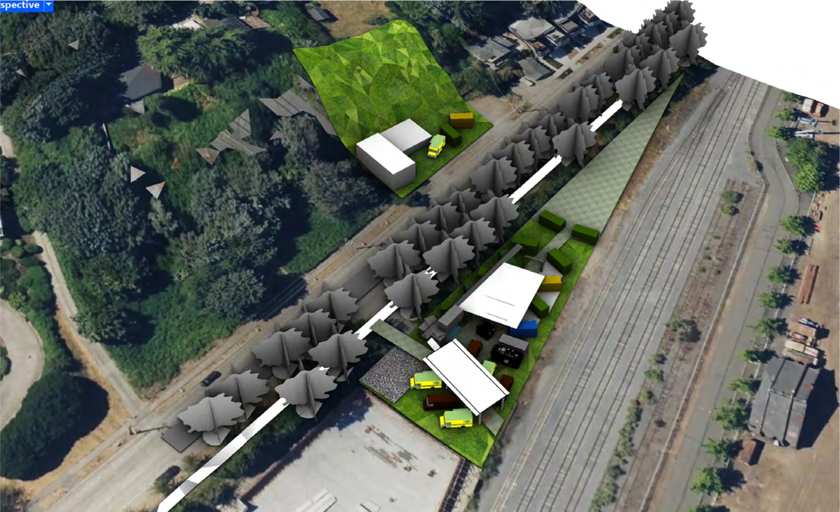 A proposal for a food truck park on Harbor Avenue SW has been submitted to the City of Seattle. The location is currently a vacant lot just south of the entrance to Jack Block Park.