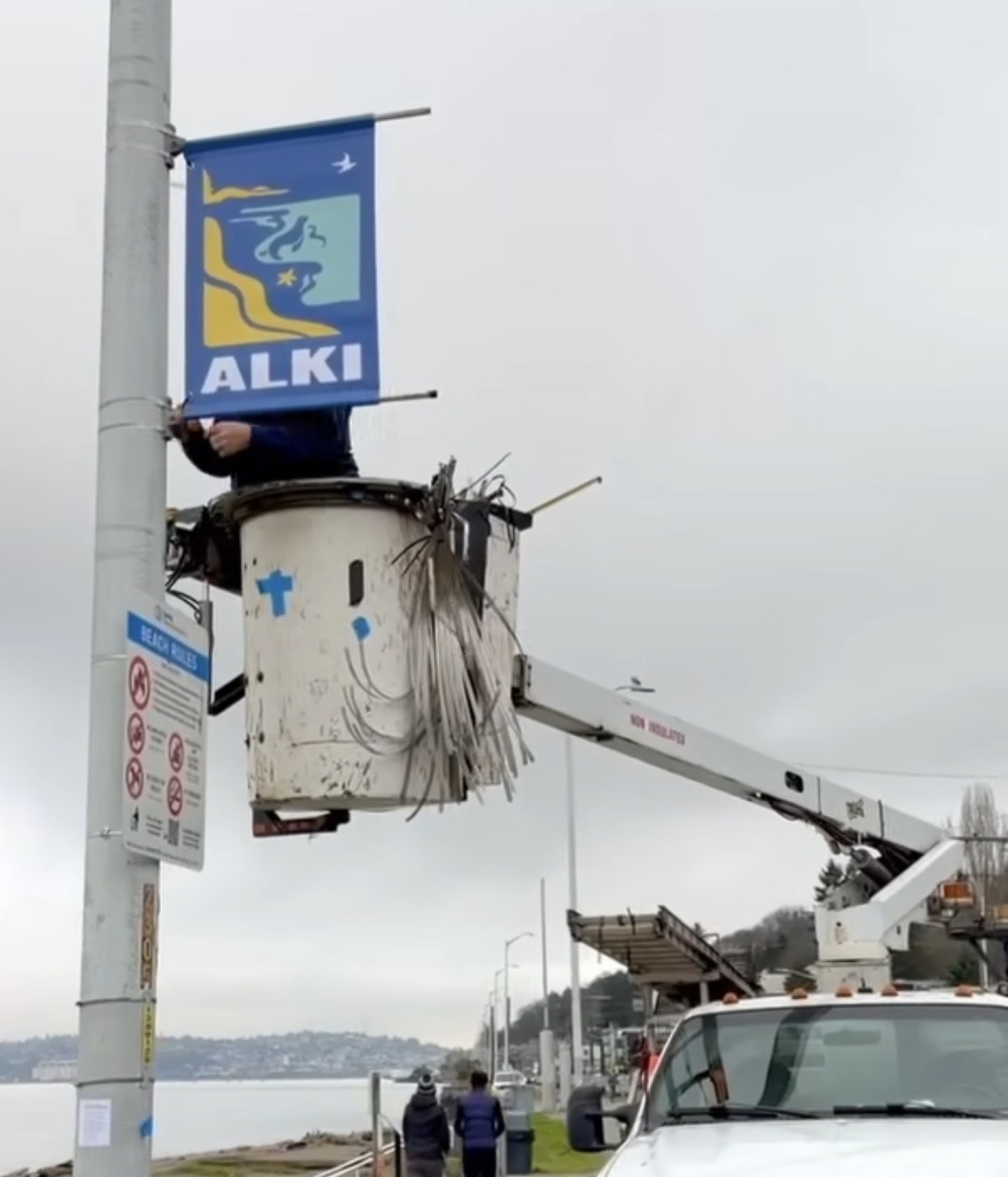 The new Alki Beach community flags were being installed on January 14.