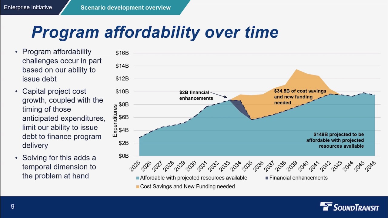 The slide presented during the Sound Transit Executive Committee meeting on Feb. 26 showed the financial challenge facing the agency.