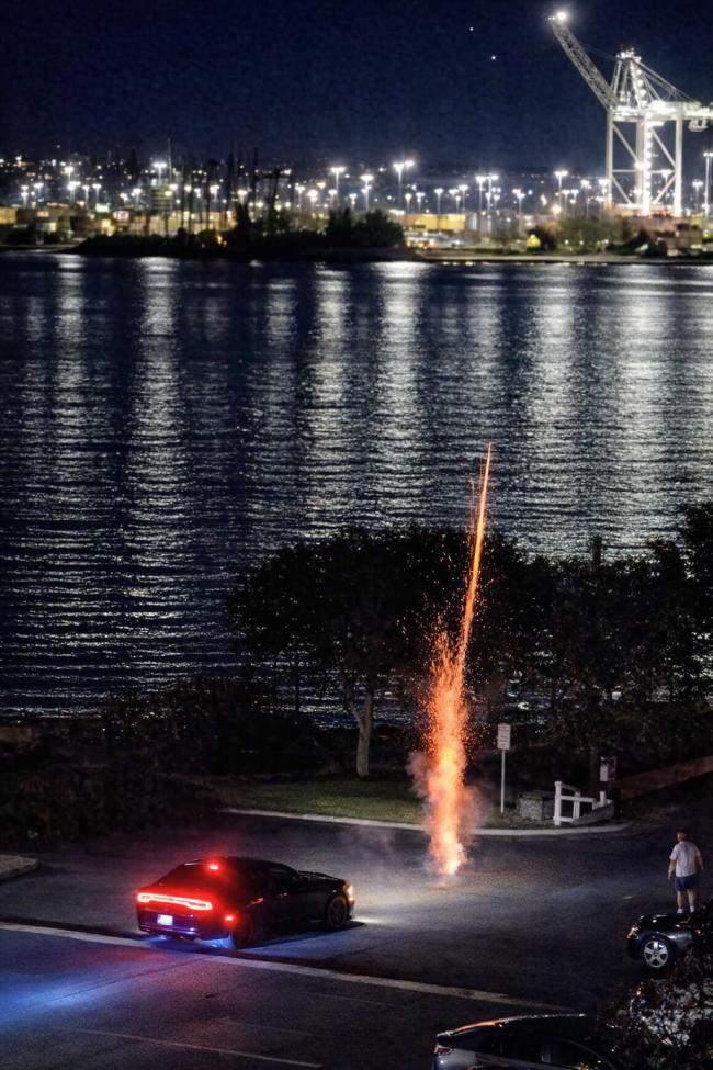 Around 8:15 PM, Tom, a 14-year resident of Harbor Avenue, called 911 to report a gathering of cars spinning tires and creating excessive noise. Just ten minutes later, at 8:25 PM, an unidentified object struck and shattered his living room window while multiple mortars and fireworks were being fired in the vicinity.