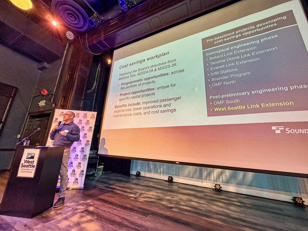 Brad Owen, Sound Transit’s Executive Director for Capital Delivery, addressed the West Seattle Chamber of Commerce on April 8 to outline significant design refinements intended to close a massive funding gap and move the West Seattle Link Extension (WSLE) toward construction. Owen described the agency's recent efforts as a "cost work plan" exercise to "build a better mousetrap," successfully bringing the project’s estimated cost down from over $7 billion to a range of $4.9 to $5.3 billion. (See WestsideSeattle's previous coverage here)