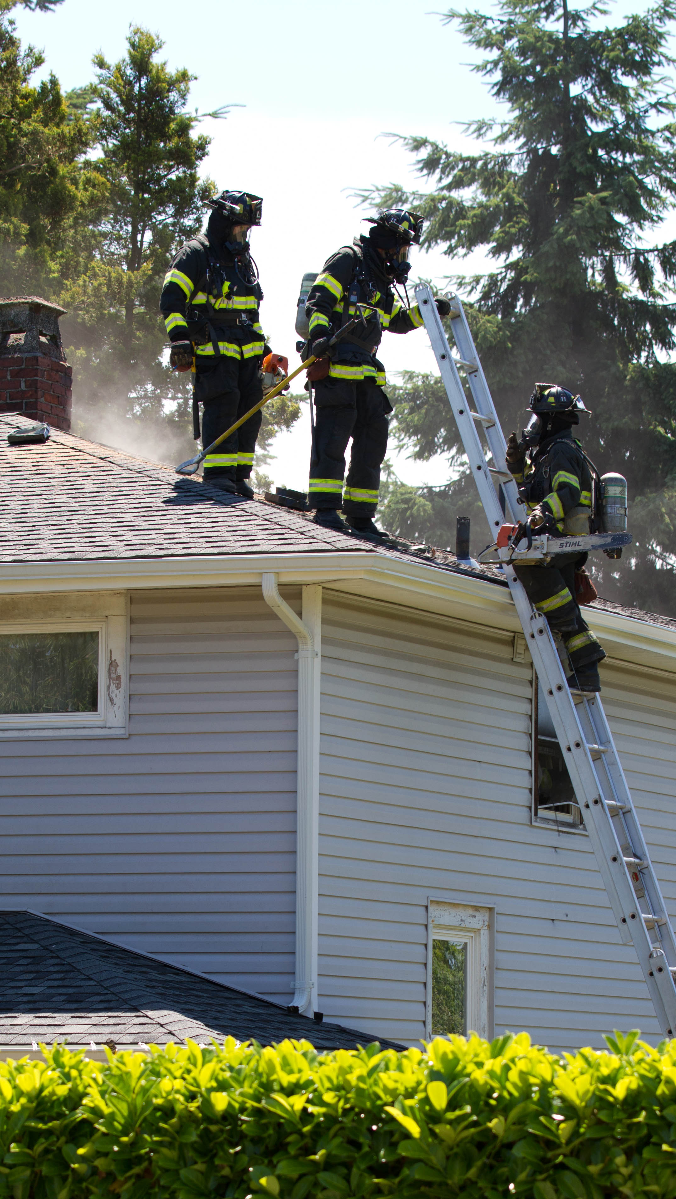 Firefighters were quickly up on the roof of a house at 3107 s.w. Kenyon to gain access to vent the fire inside. The fire was doused quickly. There were no injuries.