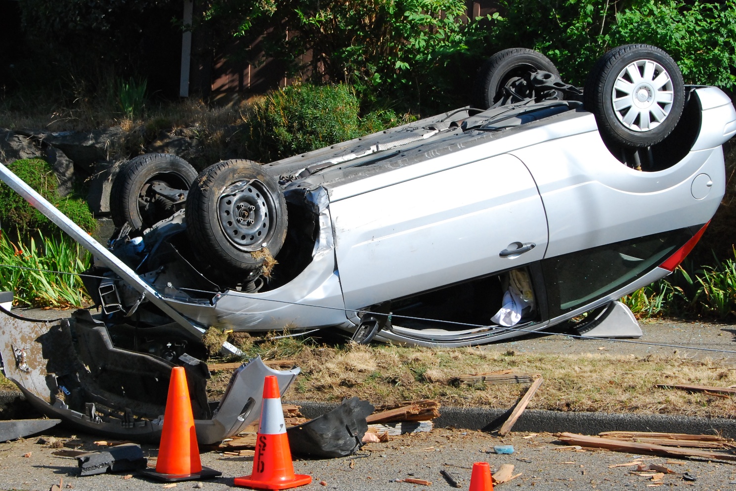 A middle aged woman driving a late model compact car was in a single car rollover accident at the intersection of 41st s.w. and s.w. Morgan shortly after 9:00 am on July 28. The accident took out the power pole at the scene as the car rolled over on to the sidewalk.