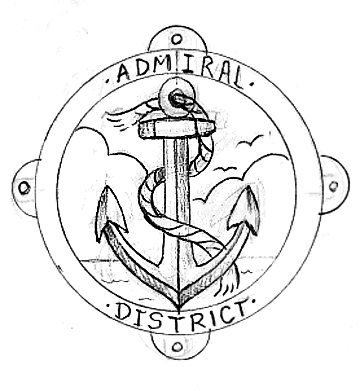 This is a rough sketch of the new logo for the Admiral District. It will be rendered in final form but remain black and white when finished.