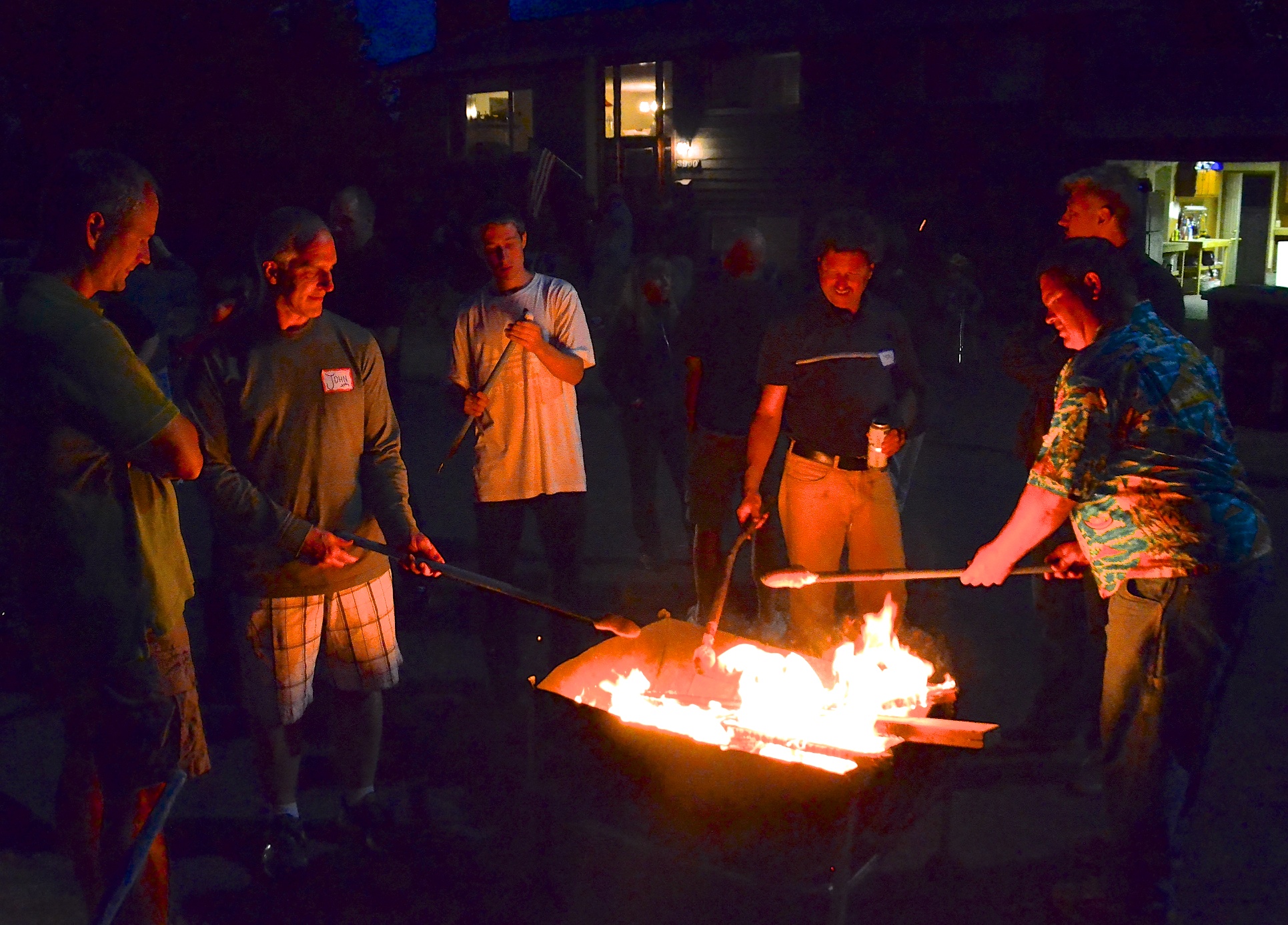 About 50 people showed up for the party in the 8000 block of 39th Ave. s.w. and they shared stories about their lives, the community and enjoyed an array of surprisingly healthy food items from Cous Cous to Greek Salad though there were some S'mores and marshmallows being cooked over the open fire barrel.
