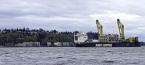 Bertha is now docked at Pier 46 to start the unload process for the world's largest boring machine.