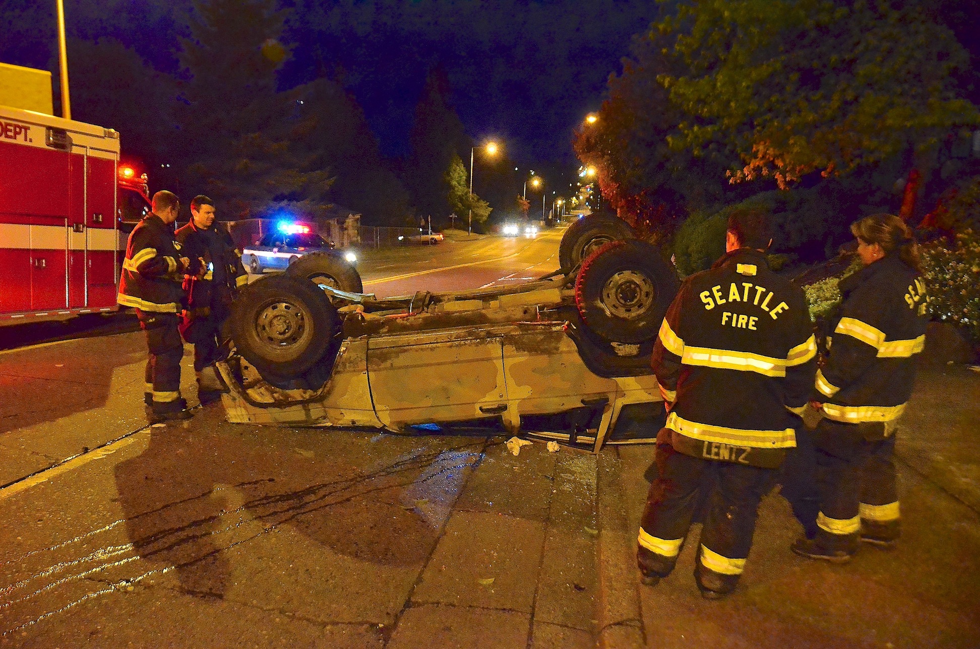Seattle Fire Department offered an update via Twitter " Seattle Fire paramedics transported 26YO male to HMC after Jeep SUV flipped into retaining wall. Minor injuries."