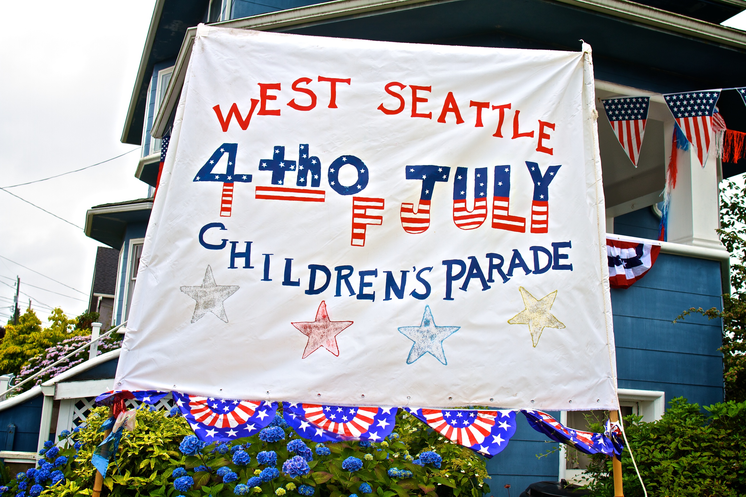 An estimated more than 1000 people all dressed in 4th of July regalia showed up for the 19th annual 4th of July Admiral Children's Parade. Former Mayor Greg Nickels spoke.