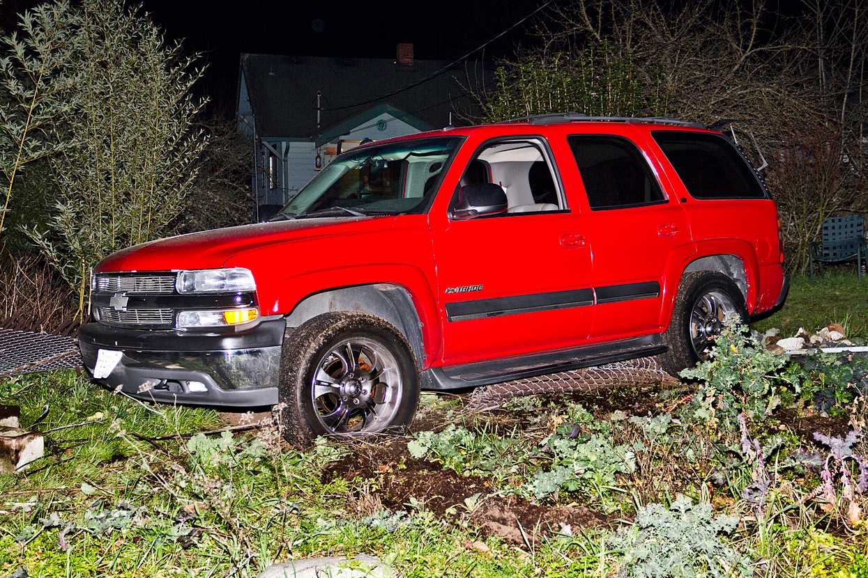 Police were searching for a suspect that was driving this stolen red, late model Chevy Tahoe SUV in the 4800 block of S.W. Hudson on Friday night, Jan. 31.