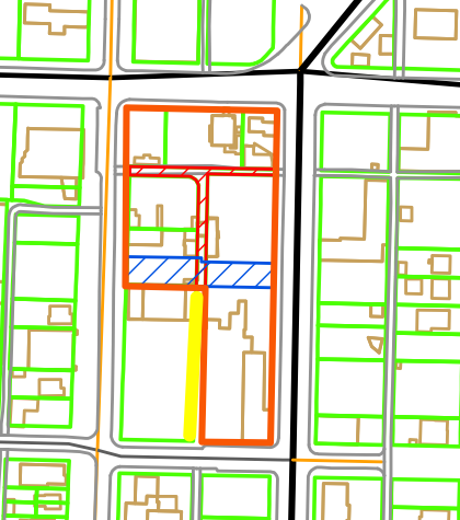 The area of blue stripes in the map show the alley space subject to the public meeting for the Whittaker project planned for Fauntleroy Way S.W. to go forward.