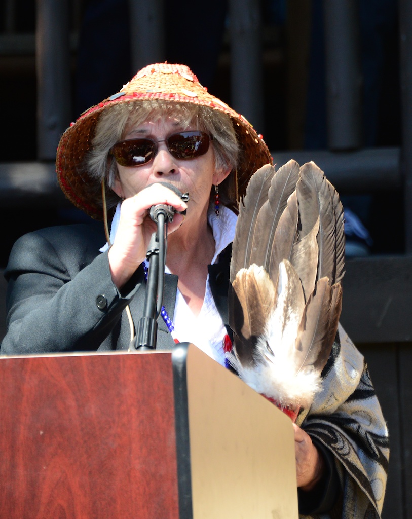 Duwamish tribal chair Cecile Hansen plus Ken Workman and Blake Shelafore.