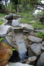 Year round attractiveness is achieved in this Northwest style garden with Asian overtones using plants that are both low-maintenance and easy to obtain.