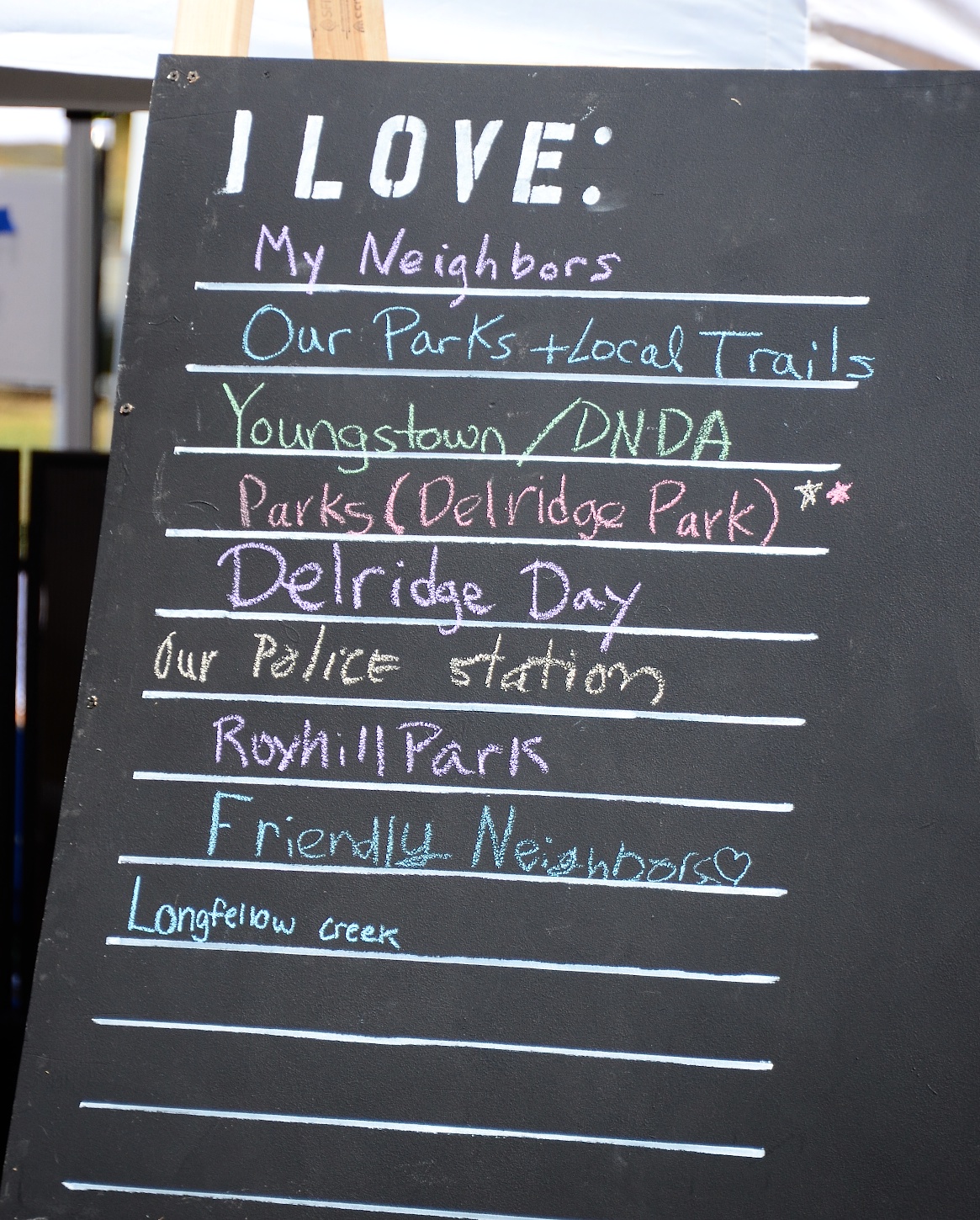 The event this year had no retail businesses, meaning no companies selling products, no food trucks or other vendors. "We think there are more activities to help build community. The Dept. of Neighborhoods and Department of Planning and Development, they are here to get community input on the update of our neighborhood plan," said Spalding. To that end they set up blackboards and asked people for their thoughts on what they already liked about the area... "I Love" had entries like "My neighbors, Our parks and local trails, Youngstown DNDA, our police station, and Longfellow Creek. They were also asked what they think is needed under "We Need" and got responses like, "Infrastructure, sidewalks and safe crosswalks, fix streets and alleys, more activities for all youth, better drainage and another park."