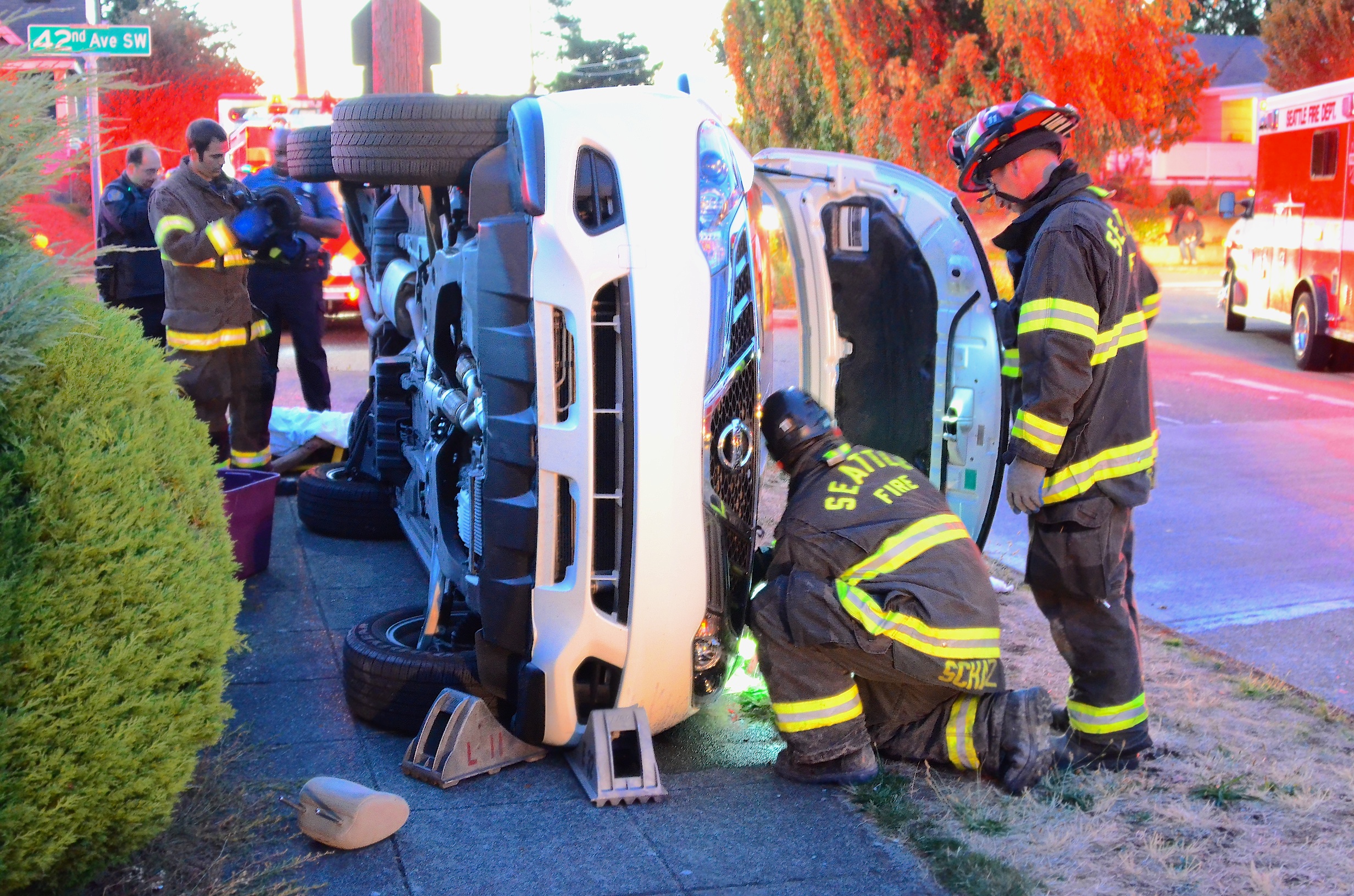 This van flipped on its side near 42nd and Dakota Street SW around 6am trapping the driver until emergency crews arrived to extricate him. He was taken to the hospital
