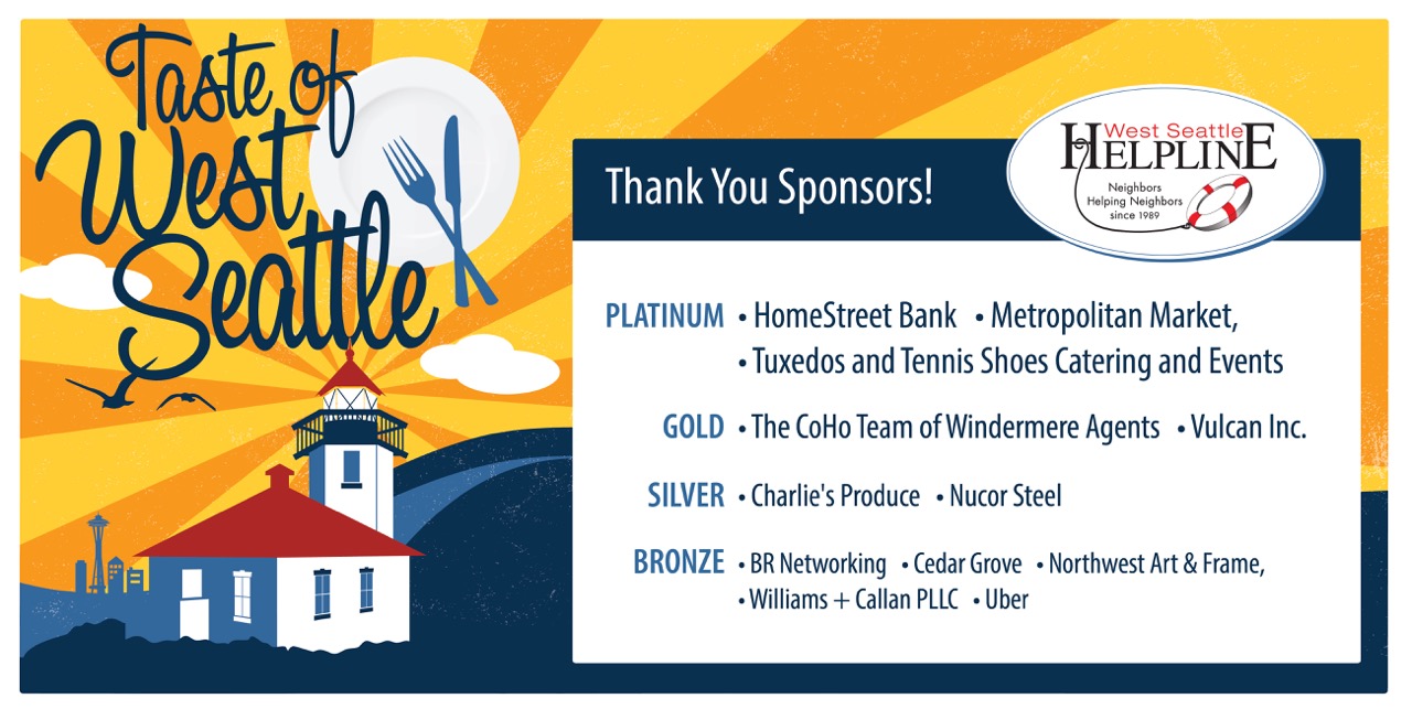 The Taste of West Seattle annual celebration of local food has finalized their list of sponsors for this year and has exceeded their sponsorship goal by nearly $3000. That means all expenses have been covered, so all proceeds from admission and raffle ticket sales will go directly to West Seattle Helpline's programs to help neighbors in need. They extended their gratitude to area sponsors for their support.