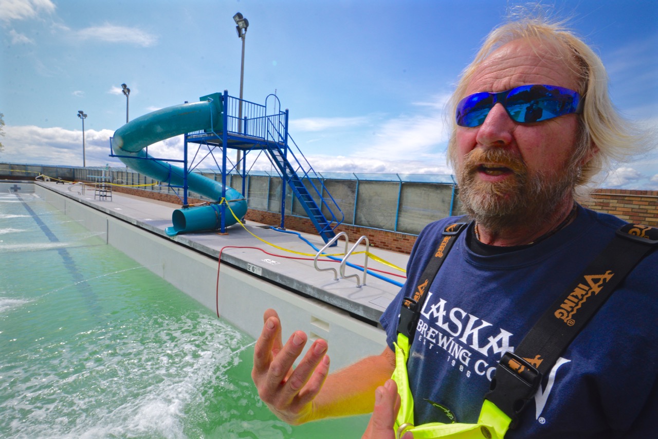 Now, after 32 years and one year shy of the pool’s 75 year diamond anniversary, retirement is on his mind. He’s not certain, but he’s leaning toward making this year his last. He too raised his own two children on site and they in keeping with family tradition have helped their father maintain and run the pool. Mark of course added an environmental twist. He often spots Killer Whales as they pass by, from his perch on the top of the pool slide and he frequently goes out in a dinghy, rowing through the waves to collect samples of what the orcas leave behind for researchers to analyze.