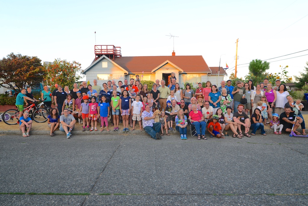 Big gatherings seemed to be the rule rather than the exception for Night Out in West Seattle at least as large numbers of neighbors enjoyed getting to know each other, share block watch and emergency preparedness information and just enjoy a warm Seattle evening. Aug. 4.