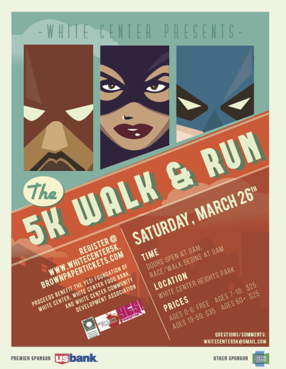 The White Center Community Development Association (CDA) is partnering with the YES Foundation of White Center and the White Center Food Bank to host the fourth annual White Center 5K Walk & Run. The 5K will take place on Saturday, March 26, 2016 from 9:00am to 11:00am at White Center Heights Park. This will be a Superhero Run and all participants are encouraged to dress up as their favorite superheroes.