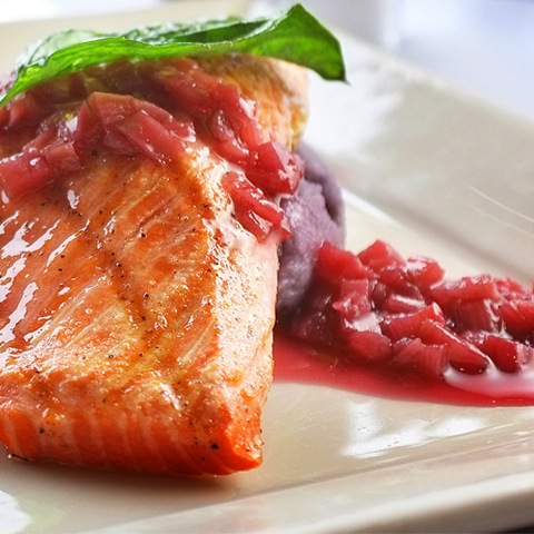 Salty's pastry chefs serve you Rhubarb Tarte Tatin in April, and if you can't make it in to Salty's, try our home-cook's recipe.