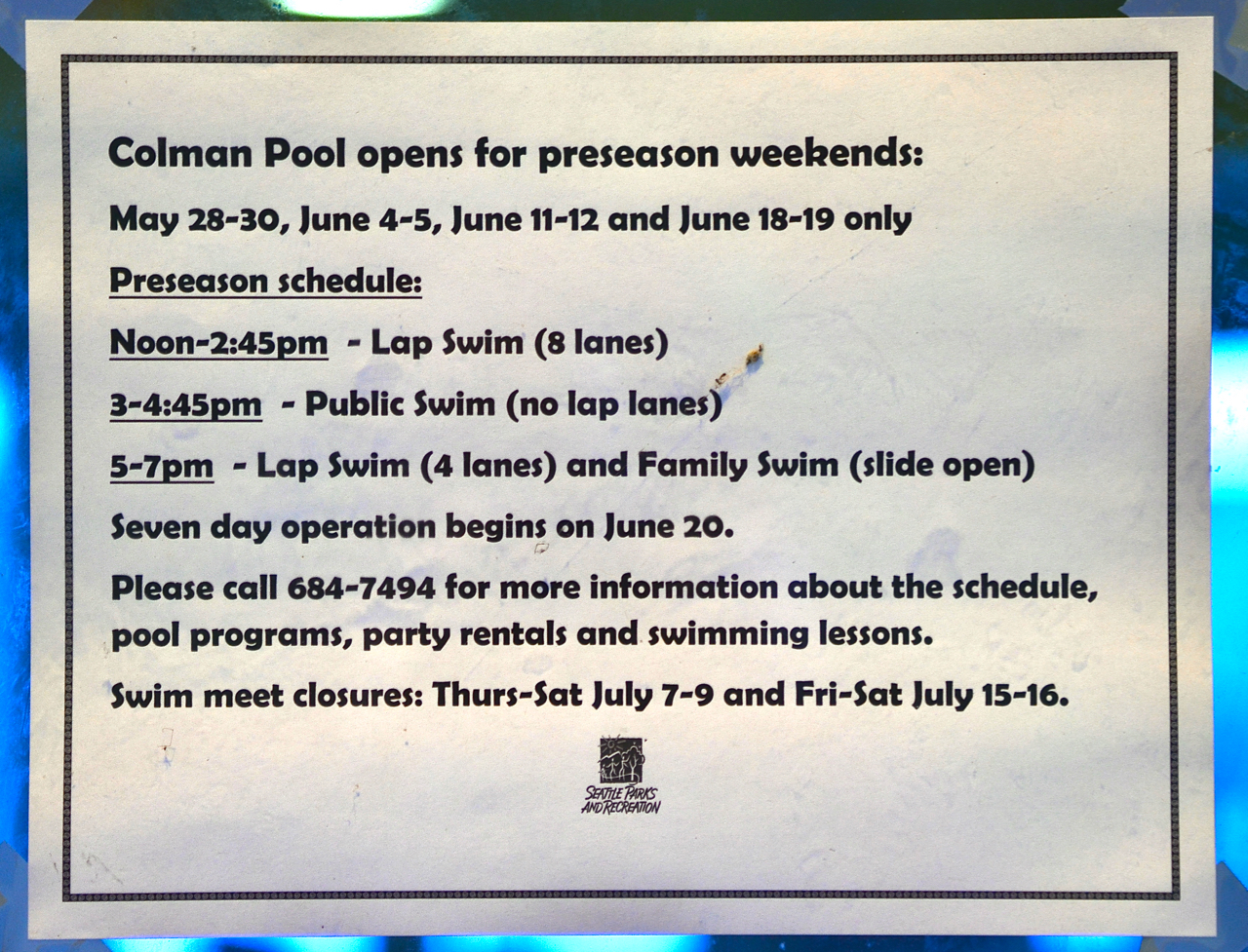 Pool Information: 206-684-7494