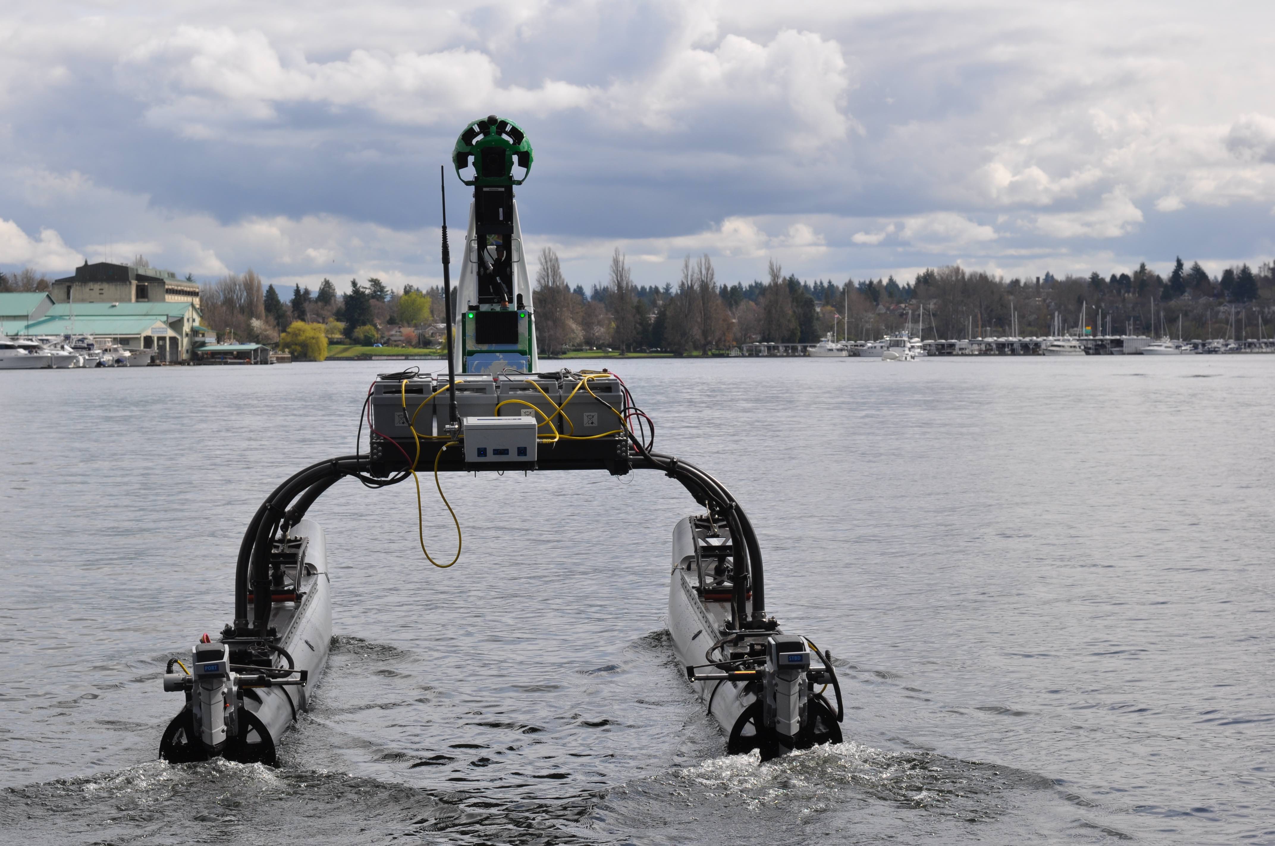 A panoramic view of essentially everywhere from streets to trails to the interiors of many buildings is all accomplished by driving (or walking) around with a special set of cameras whose captured imagery is later stitched together to create a 360 degree view. Now they've added views of Seattle waterways including some familiar ones in West Seattle