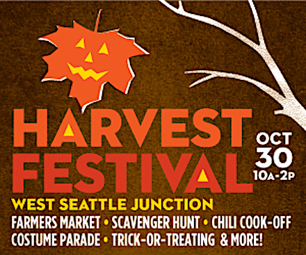 There will be activities for kids sponsored by local businesses and organizations, a chili cook-off from participating local restaurants, costumes and prizes, trick-or-treating, and of course great fall bounty brought to The Junction by our local West Seattle Farmers Market.