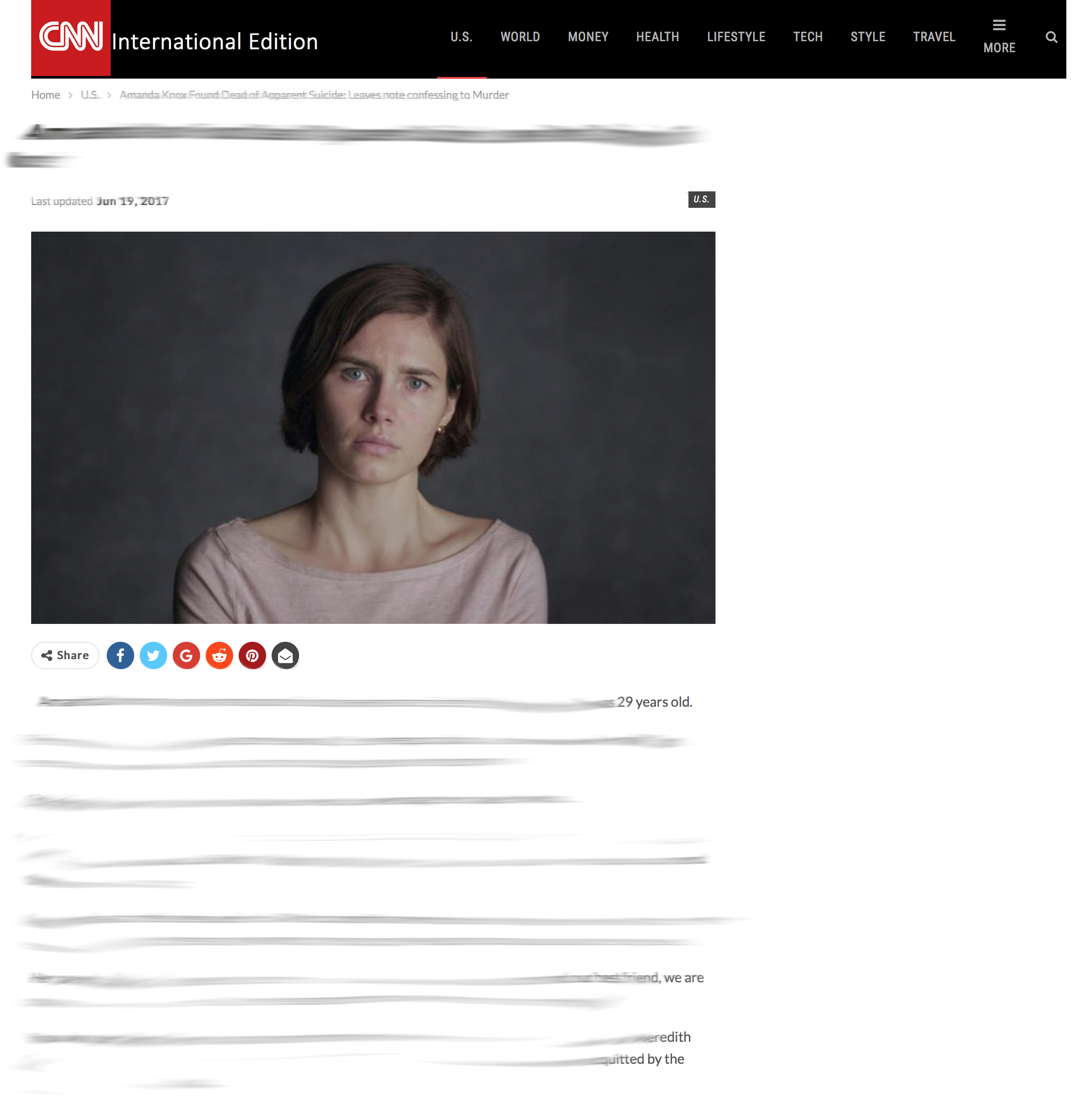 A fake news report that claimed Amanda Knox had committed suicide and confessed to murder in a note led to a huge surge of traffic to the West Seattle Herald’s website on Monday June 19.